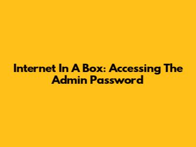 Internet In A Box: Accessing The Admin Password